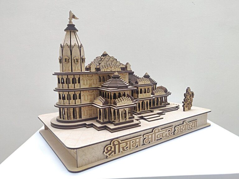 ✨ Divine Laser-Cut Ram Mandir – 12 x 7 Inch MDF Wooden Temple for Pooja