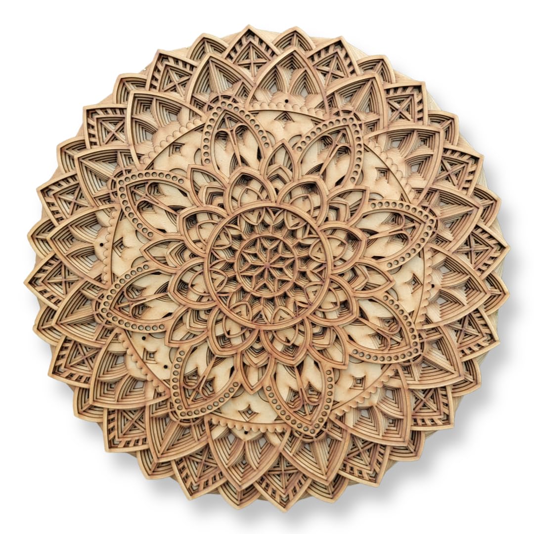 Dive into the meditative art of mandala making with this all-in-one kit. Designed for both beginners and experienced crafters, this project provides a fulfilling and artistic experience from start to finish. Our kit features precisely laser-cut layers of premium pine MDF, which assemble into a substantial 12 x 12 inch masterpiece, perfect for making a statement.